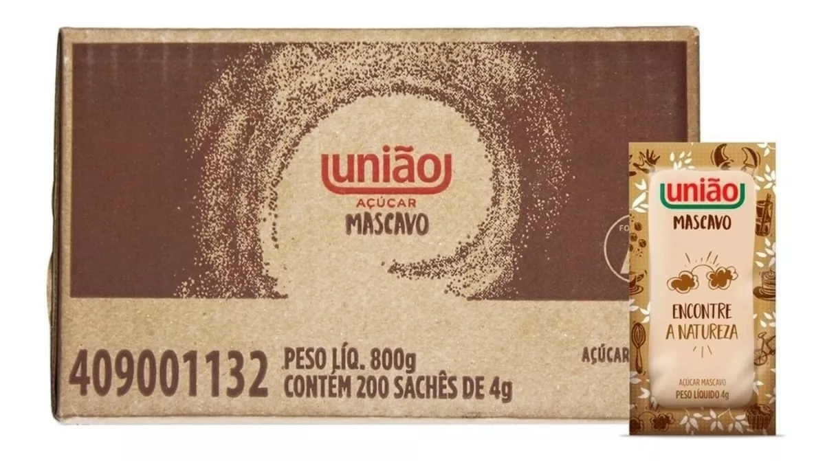 Açúcar União Mascavo Sache Caixa Com 200 Unidades De 4g