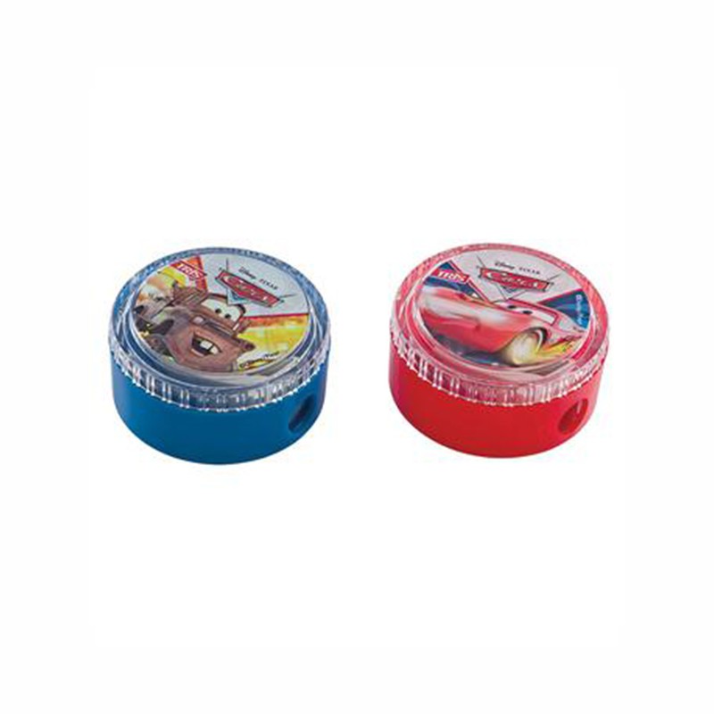 Apontador com depósito Carros, ideal para apontar sues lápis sem fazer sujeira, cores e desenhos sortidos.