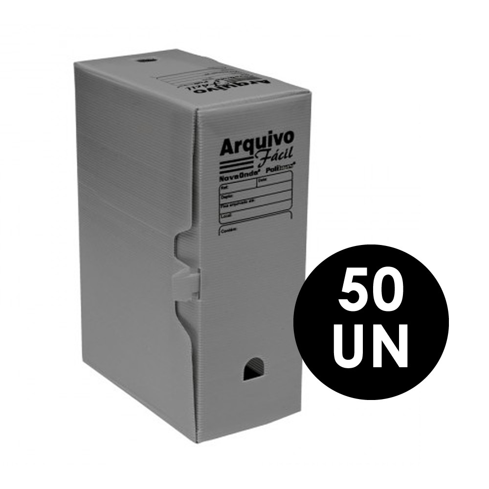 Arquivo morto polionda. Tamanho oficio. Marca Polibras. Cor cinza. Ideal para arquivamento de documentos e pastas. Contém 50 Unidades.