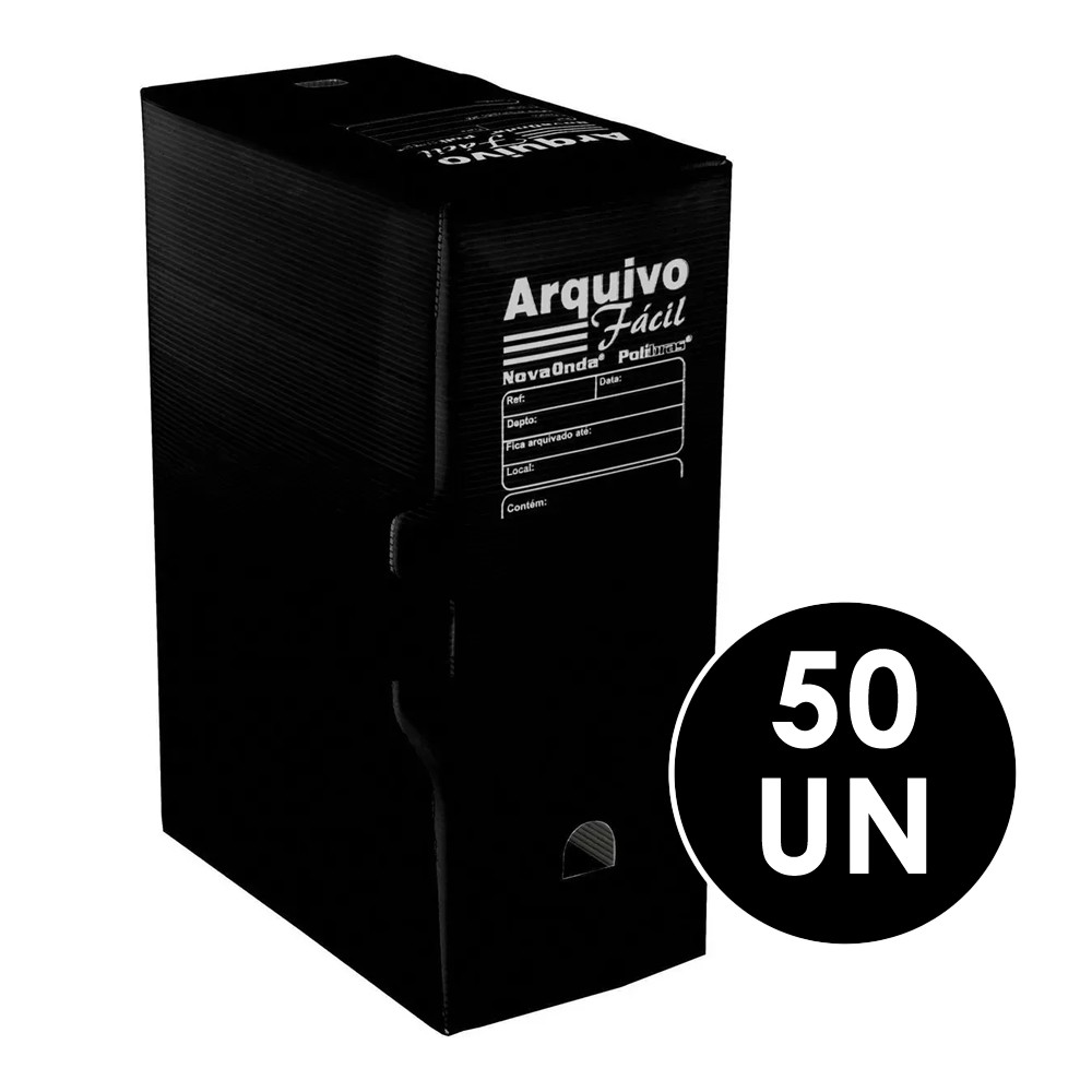Arquivo morto polionda. Tamanho oficio. Marca Polibras. Cor preto. Ideal para arquivamento de documentos e pastas. Contém 50 Unidades.