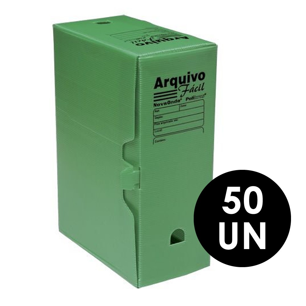 Arquivo morto polionda. Tamanho oficio. Marca Polibras. Cor verde. Ideal para arquivamento de documentos e pastas. Contém 50 Unidades.