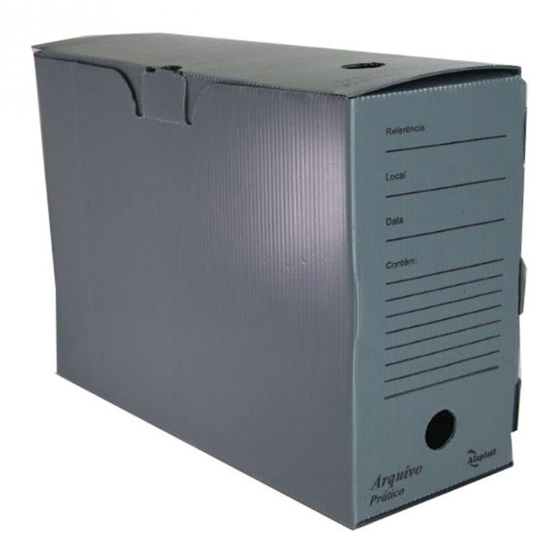 Arquivo morto tamanho ofício. Cor: Cinza. Marca: Alaplast.