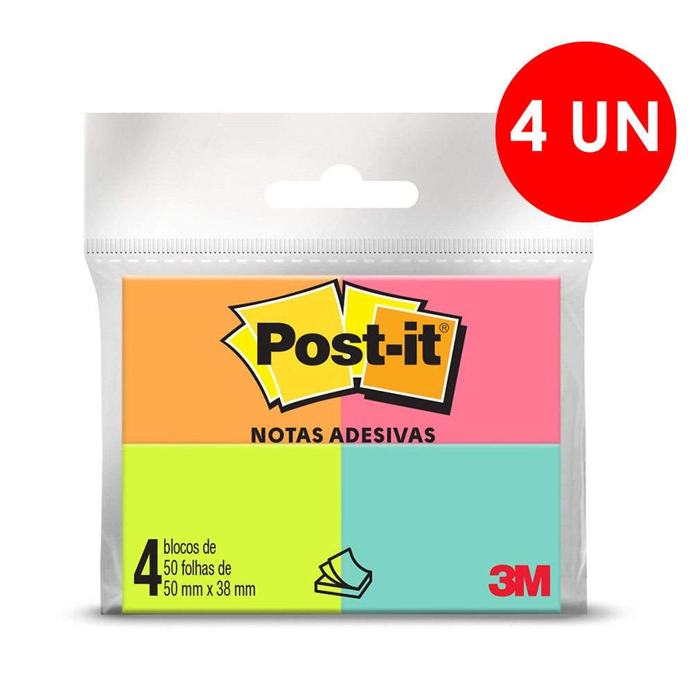 Bloco Adesivo Post-It 3M 38x50mm Tropical 653 C/4 UN