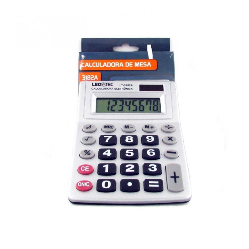 Calculadora de Mesa 8 Digitos 3182-A Leotec. Ref. 3182-A. Calculadora eletrônica de mesa. Display de 8 dígitos. Utiliza bateria.