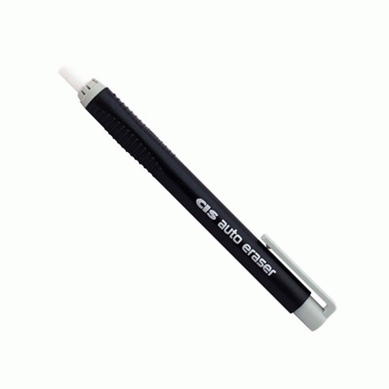 Caneta Borracha Auto Eraser CIS. Sistema retrátil com acionamento por clique. Ação Mecânica. Grip Ergonômico. Refil 5mm x 90mm.