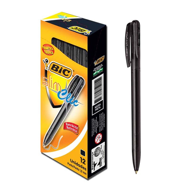 A caneta Slim Clic é retrátil e prática, possui corpo que assegura o conforto na escrita. Tinta de alta qualidade, que seca rapidamente evitando borrões na escrita. É Prática e econômica proporcionando uma escrita macia. Marca: BIC. Caixa com 12 unidades.