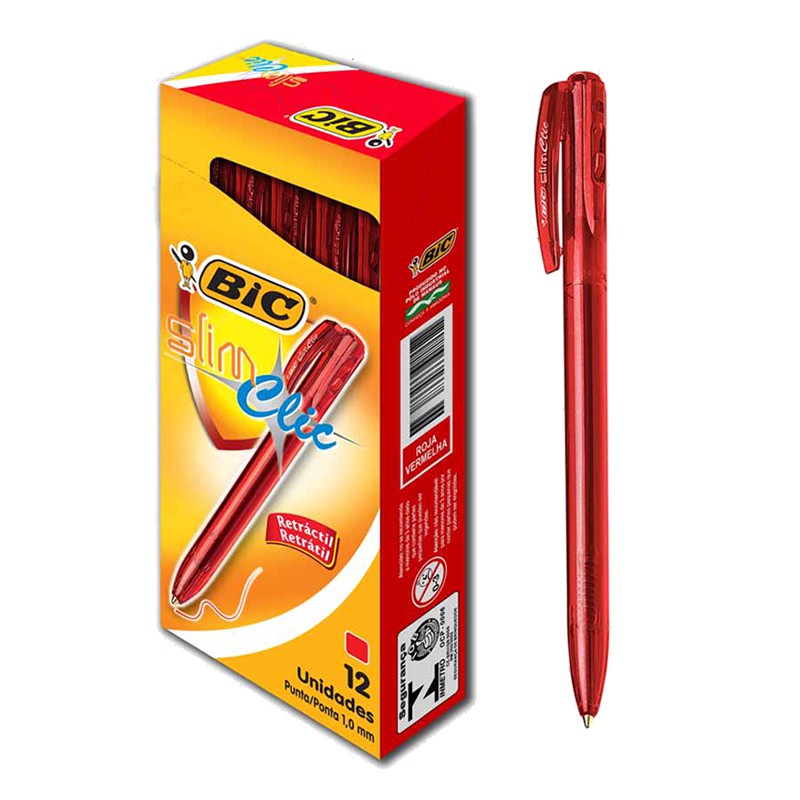 Caneta Esferográfica BIC Retrátil Slim Clic Vermelha CX C/ 12 Un