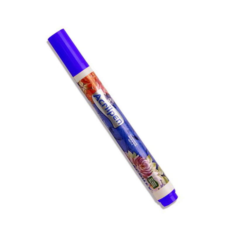 Caneta para pintar e marcar tecidos permanentemente. Cor: Azul. Para tecidos de algodão. Não utilizar em tecidos sintéticos ou engomados. Outros usos: Também pode ser usada em papel, papelão, madeira, cerâmica, gesso, etc. Marca: Acrilex