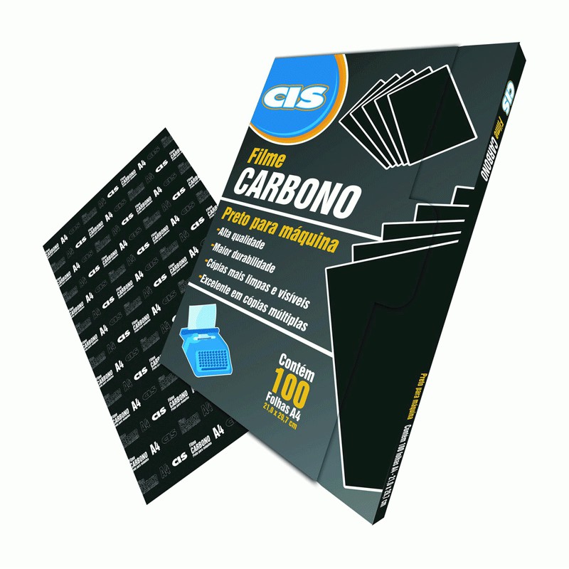 Carbono preto filme. Tamanho A4. Marca Cis. Pacote com 100 folhas.