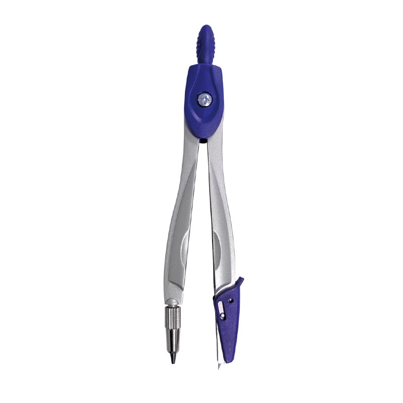 Compasso Escolar 180 Cis com cabeça de fricção tem ajuste preciso e suave do raio e sua agulha tem ângulo obtuso para maior segurança. Compasso escolar metálico, com design ergonômico, tampa protetora e estojo de acrílico com fecho clip.