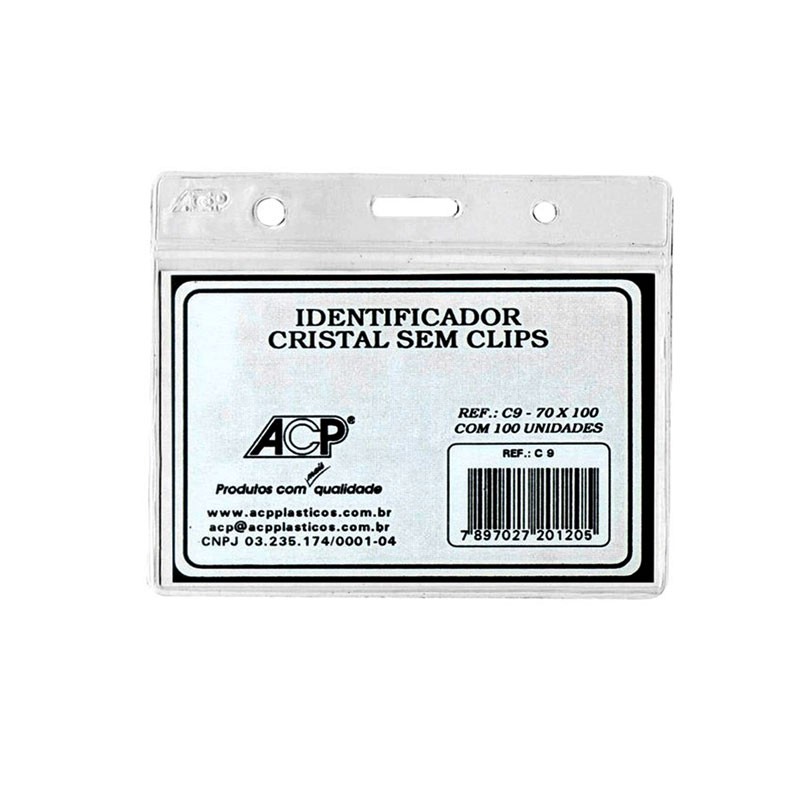 Crachá Identificador Horizontal - cristal vulcan Tamanho: 70 mm x 100 mm Abertura vertical