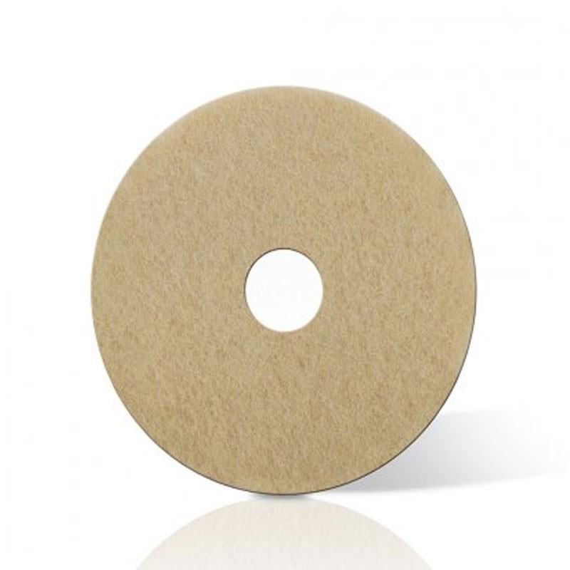 O disco bege é utilizado para realçar a aparência do piso, sem causar danos ao acabamento, constituído de uma manta de não-tecido formada por fibras sintéticas e mineral, espalhadas por todo disco e unidas por uma resina sintética.