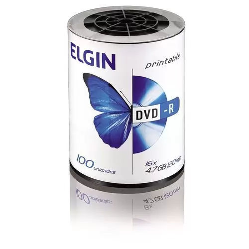 DVD-R Gravável Printable Elgin 4.7GB - 120 min. Pacote com 100 unidades. Indicado para gravação de dados, fotos, vídeos, músicas, etc.