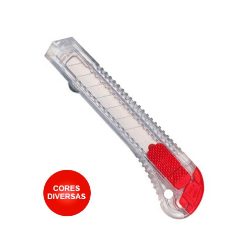 Estilete largo 18mm com corpo plástico. Cor: Cristal. Modelo: 29BP. Marca: CIS.