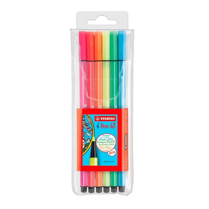 PEN 68 NEON - Seis cores de Pen 68: 024, 031, 033, 040, 054, 056. Blister plástico flexível.