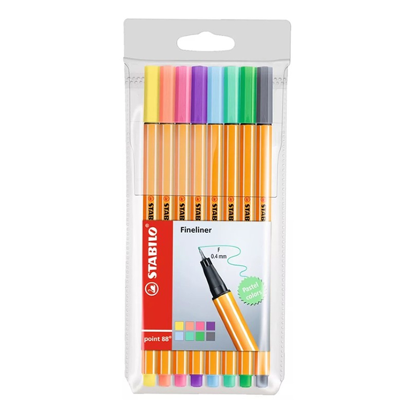 Estojo Canetas Hidrográficas Stabilo Point 88 c/ 8 unidades Cores Pasteis