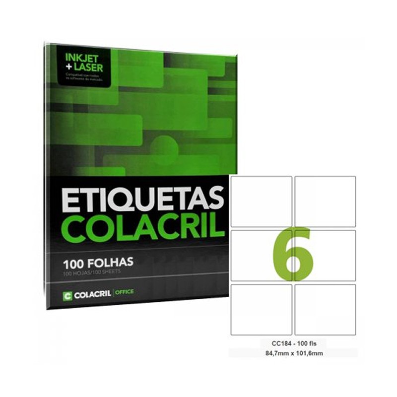 Etiqueta Adesiva Carta CC184 84,7 x 101,6 mm 100 Folhas - Colacril