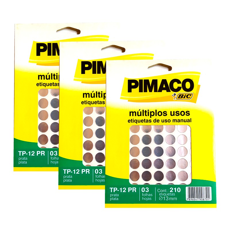 Etiqueta Adesiva Redonda Pimaco TP 12 Prata com 210 UN - 3 PCT