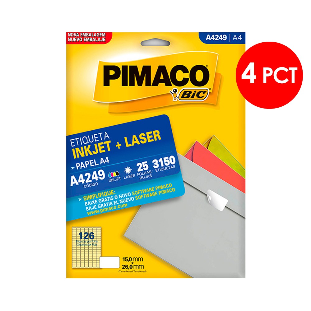 Cor branca Etiqueta retangular; Adesivo permanente; Tamanho da etiqueta (MM) 15,0 x 26,0; Etiquetas por folha 126; Etiquetas por envelope 3150. Contém 4 pacotes.