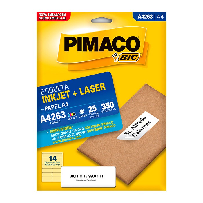 Cor branca; Etiqueta retangular; Adesivo permanente; Tamanho da etiqueta (MM) 38,1 x 99,0; Etiquetas por folha 14; Etiquetas por envelope 350.