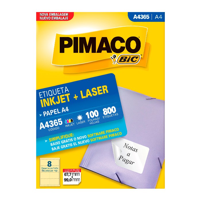 Cor branca; Etiqueta retangular; Adesivo permanente; Tamanho da etiqueta (MM) 67,7 x 99,0; Etiquetas por folha 8; Etiquetas por envelope 800.