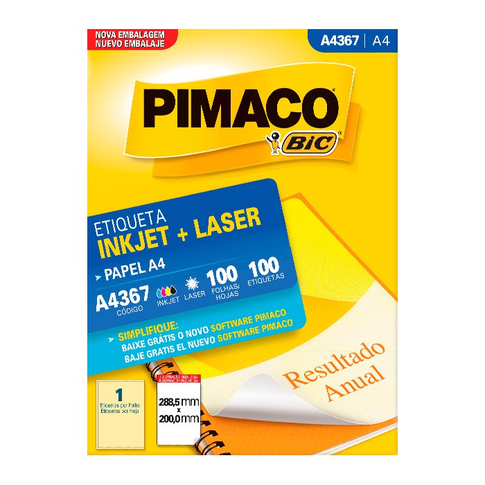 Cor branca; Etiqueta retangular; Adesivo permanente; Tamanho da etiqueta (MM) 288,5 x 200,0; Etiquetas por folha 1; Etiquetas por envelope 100.