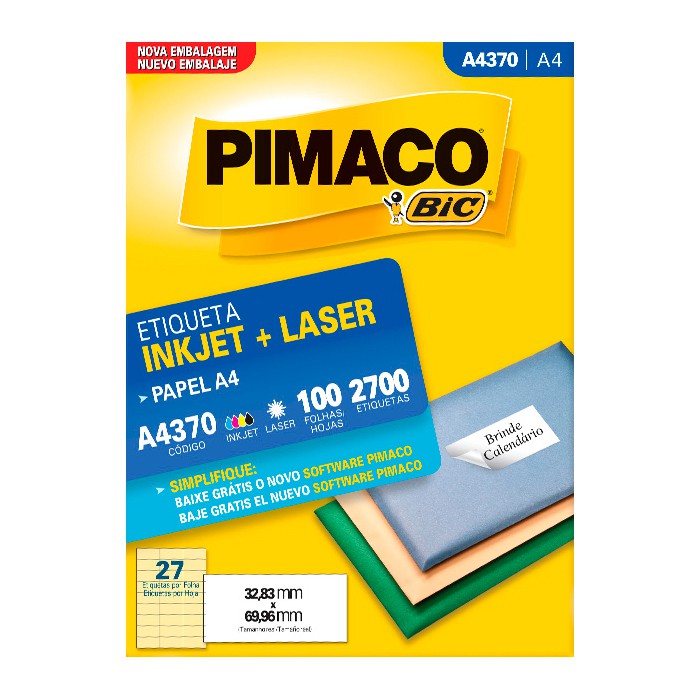 Cor branca; Etiqueta retangular; Adesivo permanente; Tamanho da etiqueta (MM) 32,83 x 69,96; Etiquetas por folha 27; Etiquetas por envelope 2700.
