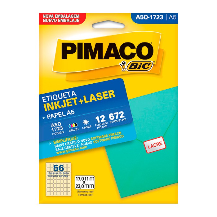 Cor branca; Etiqueta retangular; Adesivo permanente; Tamanho da etiqueta (MM) 17,0 x 23,0; Etiquetas por folha 56; Etiquetas por envelope 672.