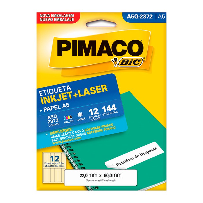 Cor branca; Etiqueta retangular; Adesivo permanente; Tamanho da etiqueta (MM) 22,0 x 90,0; Etiquetas por folha 12; Etiquetas por envelope 144.