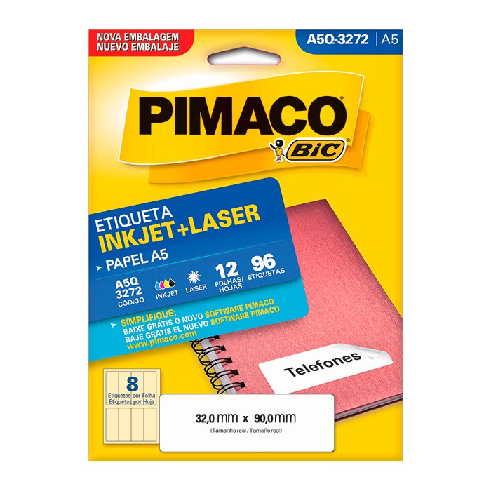 Cor branca; Etiqueta retangular; Adesivo permanente; Tamanho da etiqueta (MM) 32,0 x 90,0; Etiquetas por folha 8; Etiquetas por envelope 96.