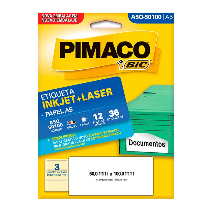 Cor branca; Etiqueta retangular; Adesivo permanente; Tamanho da etiqueta (MM) 50,0 x 100,0; Etiquetas por folha 3; Etiquetas por envelope 36.