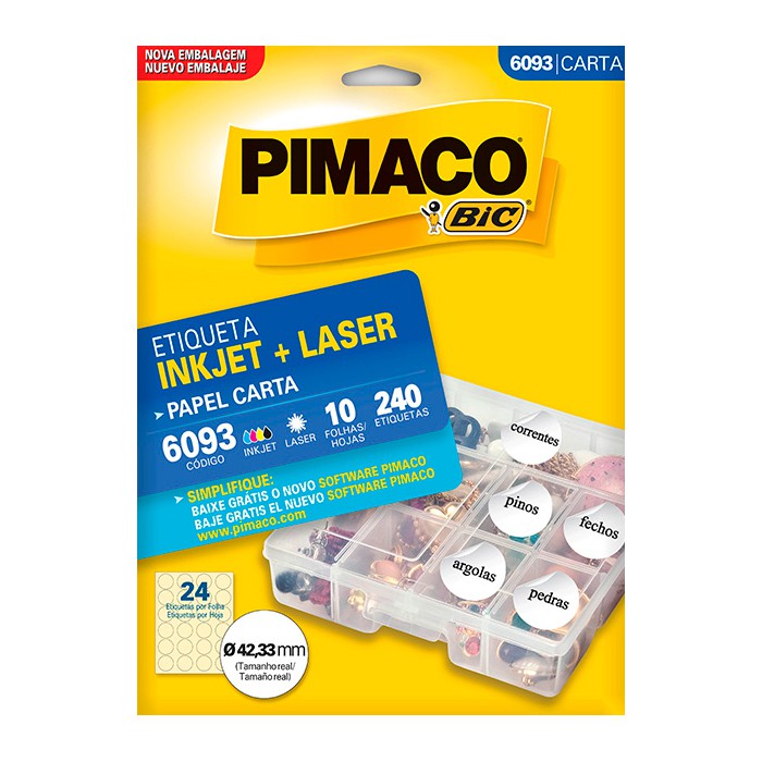 Cor branca Etiqueta redonda Adesivo permanente Tamanho da etiqueta (MM) Ï 42,33 Etiquetas por folha 24 Etiquetas por envelope 240
