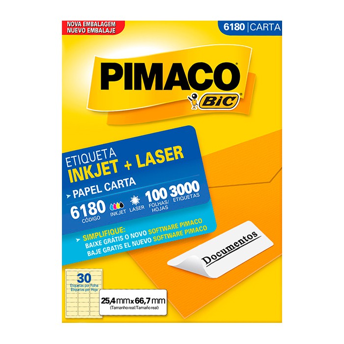 Cor branca; Etiqueta retangular; Adesivo permanente; Tamanho da etiqueta (MM) 25,4 x 66,7; Etiquetas por folha 30; Etiquetas por envelope 3000.