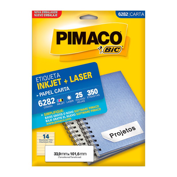 Cor branca; Etiqueta retangular; Adesivo permanente; Tamanho da etiqueta (MM) 33,9 x 101,6; Etiquetas por folha 14; Etiquetas por envelope 350.