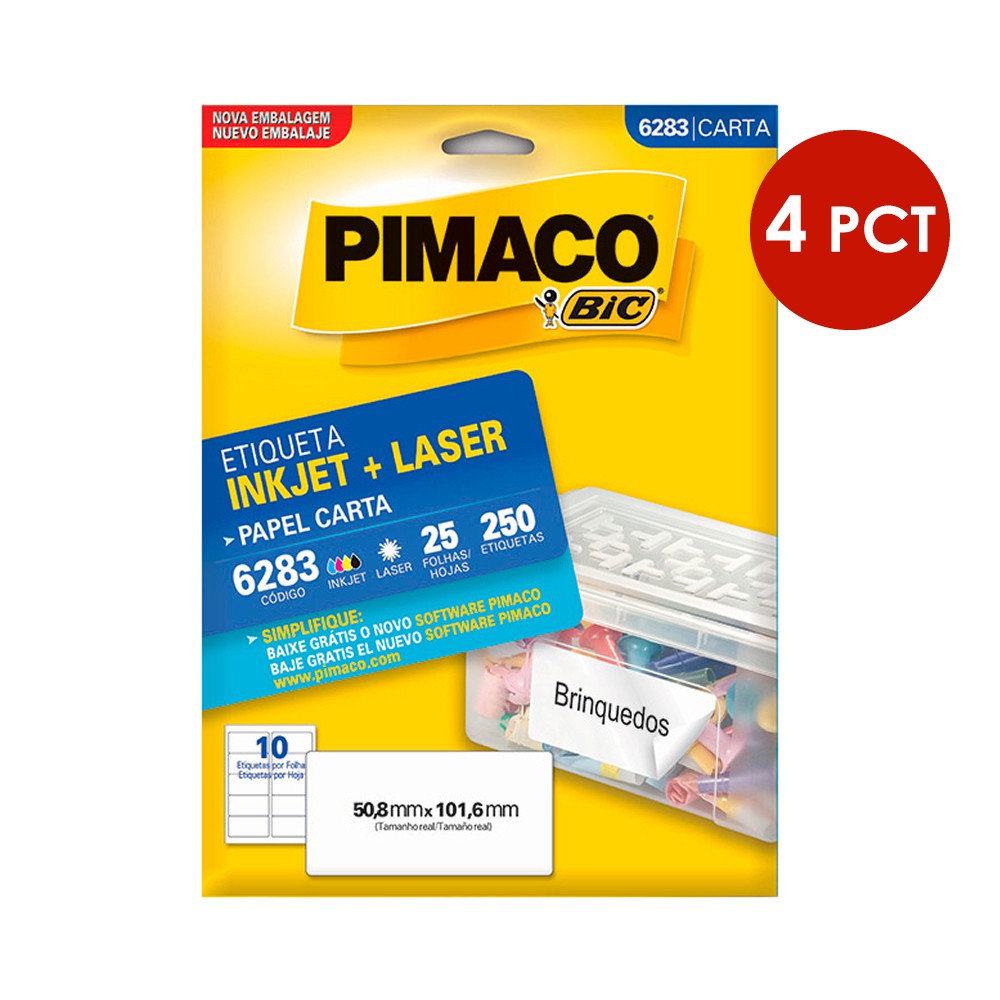 Cor branca; Etiqueta retangular; Adesivo permanente; Tamanho da etiqueta (MM) 50,8 x 101,6; Etiquetas por folha 10; Etiquetas por envelope 250. Contém 4 Pacotes.