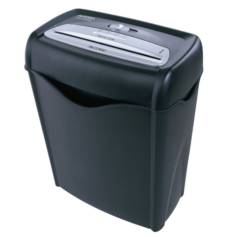 Fragmentadora de Papel 110V Aurora AS1060SB fragmenta até 10 folhas por vez ou Cartão de crédito. Corte em tiras de 6 mm. Nível de segurança P-2 (Norma DIN 66399). Sensor automático de presença de papel. Abertura de fenda: 220mm.