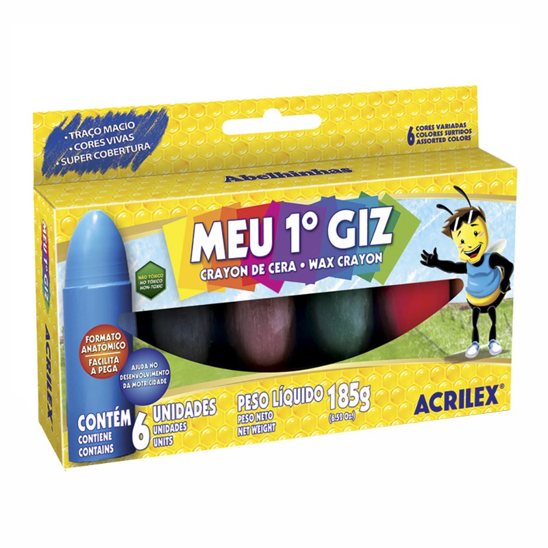 Giz de Cera Meu Primeiro Giz Acrilex com 12 Cores. Para trabalhos infantis.Formato anatômico que facilita a pega. Ajuda no desenvolvimento da motricidade.