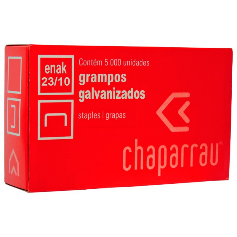 Grampo com acabamento galvanizado. Medida: 23/10. Marca: Chaparrau.