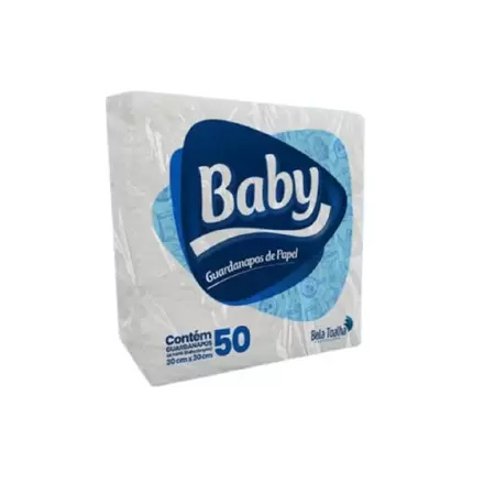 Guardanapos brancos de mesa, 30x30 cm, da Linha Baby, com folha simples e 100% celulose, ideais para lanchonetes e cafeterias. Pacote com 50 folhas, macios e absorventes. Conservar em local seco.