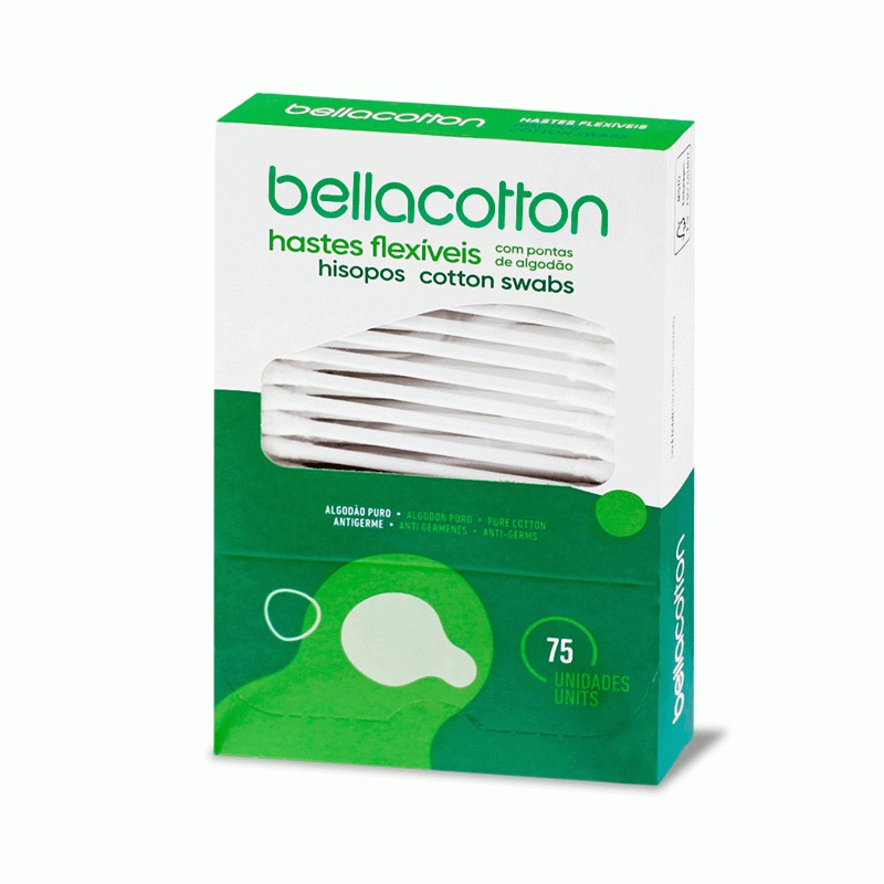 Hastes Flexiveis C/75 - Bella Cotton. Com pontas de algodão puro, Indicado para a limpeza dos ouvidos, nariz, olhos e umbigo.