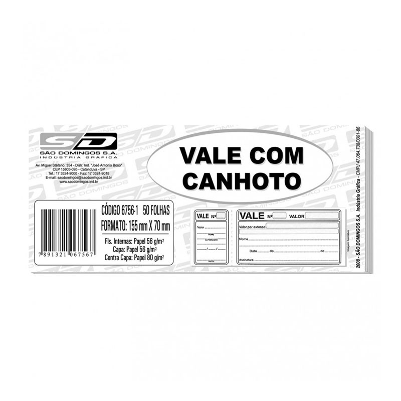 Vale com canhoto com 50 Folhas. Formato: 155mmX70mm. Modelo: 6756-1. Marca: São Domingos.