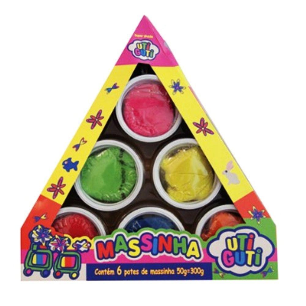 Kit massa de modelar triangulo a base de cereais super macia para uso escolar e atividades lúdicas. Embalagem contém 6 potes com 50g cada. Marca: Uti Guti.