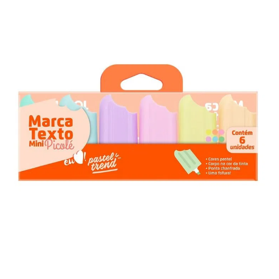 O marca texto Mini Picolé une 3 tendências em um só produto – miniaturas colecionáveis, formato picolé e cores pastel. Ele vem com 6 lindas cores pastel e tem traço de 2-4mm.