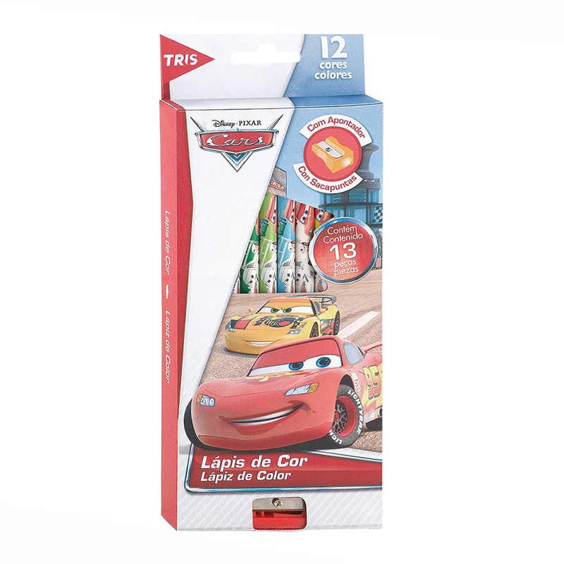 Lapis de Cor 12 Cores Carros Tris + 1 apontador. Cores vibrantes. Corpo sextavado.