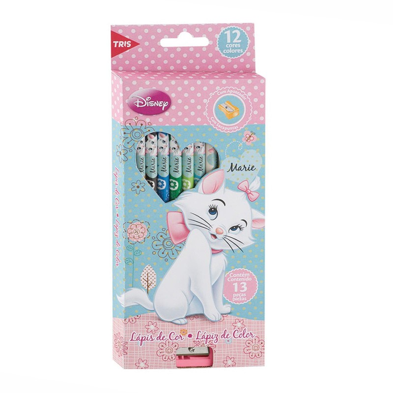 Lápis de Cor 12 Cores Marie Tris + 1 apontador. Cores vibrantes. Corpo sextavado.