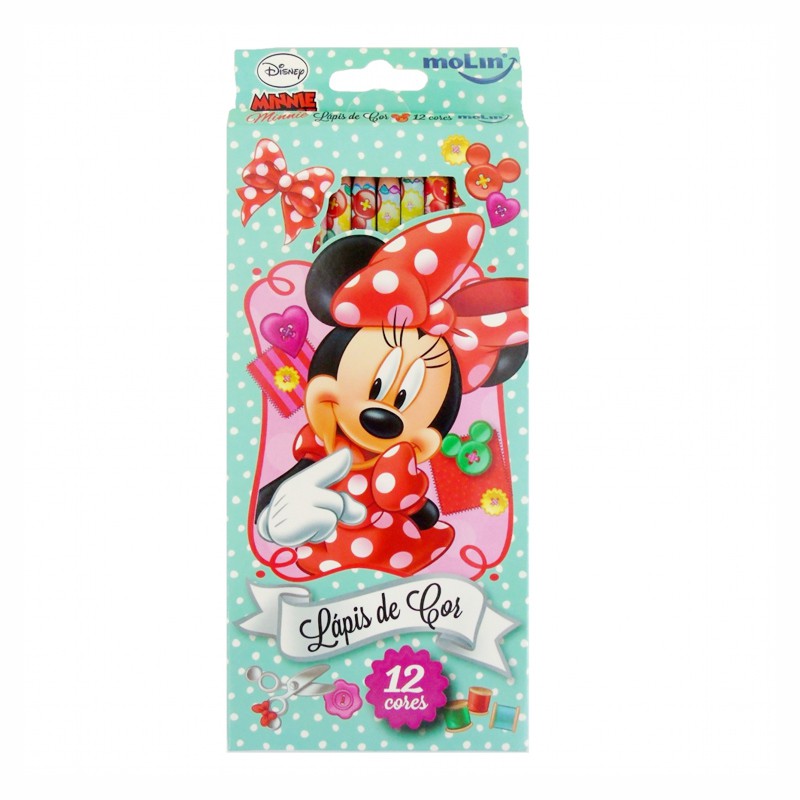 Lápis de cor Minnie para uso escolar e profissional. Ótima transferência de cor para o papel, com grande cobertura. Fácil de apontar e com minas resistentes. Cores vivas e brilhantes. Caixa com 12 cores.
