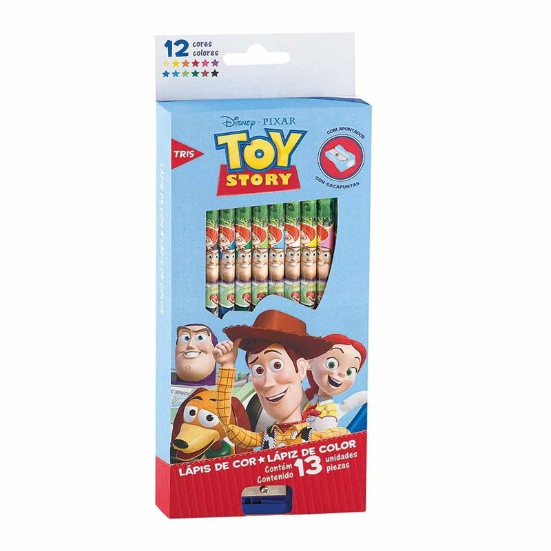 Lapis de cor 12 cores Toy Story Tris + 1 Apontador. Cores vibrantes. Corpo sextavado.