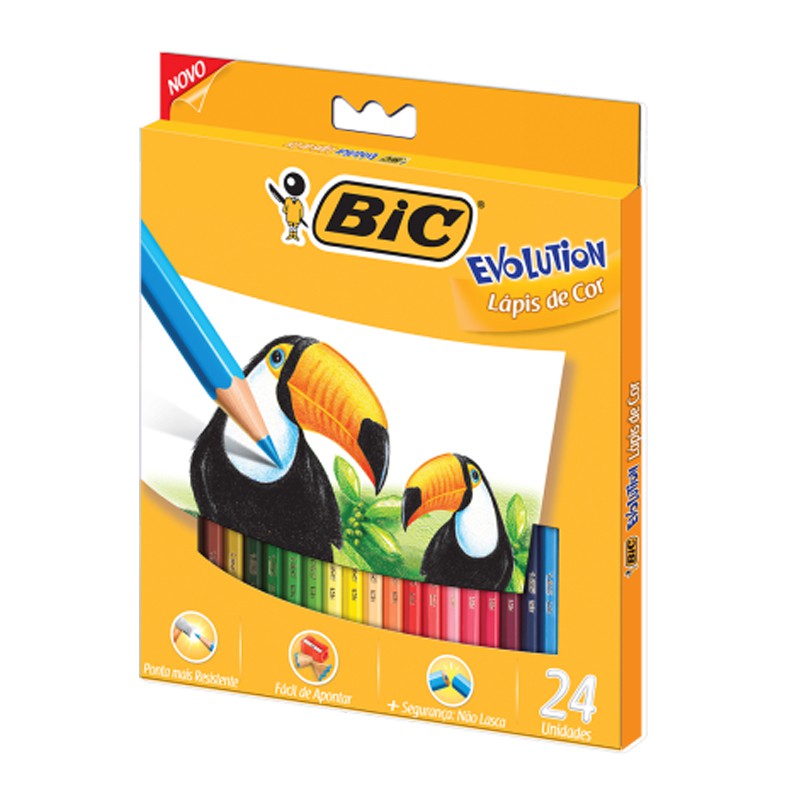 Ideais para o uso escolar, fáceis de apontar, macios ao pintar e tem ótima transferência para o papel. Possuem cores vivas e brilhantes que aguçam a criatividade das crianças! Marca: Bic.