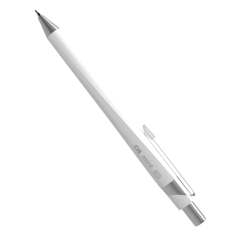 Lapiseira Triangular 0,7mm Cis Mint Branca 58.8400. Características do produto: Design Moderno. Corpo triangular, ergonômico. Textura emborrachada. Ponta retrátil. Clip metálico.