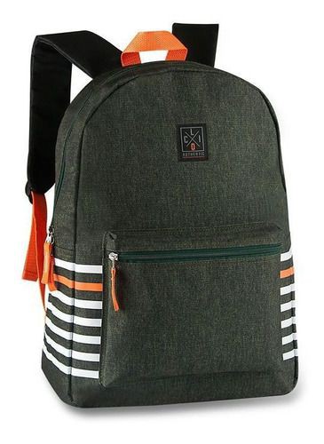 Mochila Clio Verde Oliva/Laranja MF2010 Authentic, A mochila listras é confeccionada em poliéster e bolso frontal com fechamento em zíper.